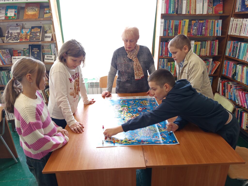 Юні читачі ознайомилися з книжковою виставкою, обрали книжки до смаку, грали в пізнавальну гру «Мандруємо по країнах світу» та отримали подарунки за активність.